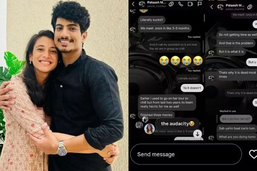 ரெட்டிட் (Reddit) பக்கத்தில் வெளியான அந்த ஸ்கிரீன்ஷாட்களில், பலாஷ் முச்சல், மேரி டி'கோஸ்டா என்ற பெண்ணை ஸ்விம்மிங் செய்ய அழைத்து Flirt செய்ததாகவும், அதற்கு அந்தப் பெண், "ஸ்மிருதியை நீங்கள் லவ் பண்றீங்க தானே.. அப்புறம் ஏன் என்னை அழைக்கிறீர்கள்?" எனக் கேட்க, முச்சல் அதற்குப் பதில் சொல்லாமல் தவிர்த்ததாகவும் குறிப்பிடப்பட்டுள்ளது. இதனால், உண்மையிலேயே தந்தையின் உடல்நலக் குறைவால் திருமணம் நின்றதா அல்லது பலாஷ் முச்சல், ஸ்மிருதியை ஏமாற்றினாரா என்பது குறித்துப் பலரும் சமூக வலைதளங்களில் விவாதித்து வருகின்றனர்.