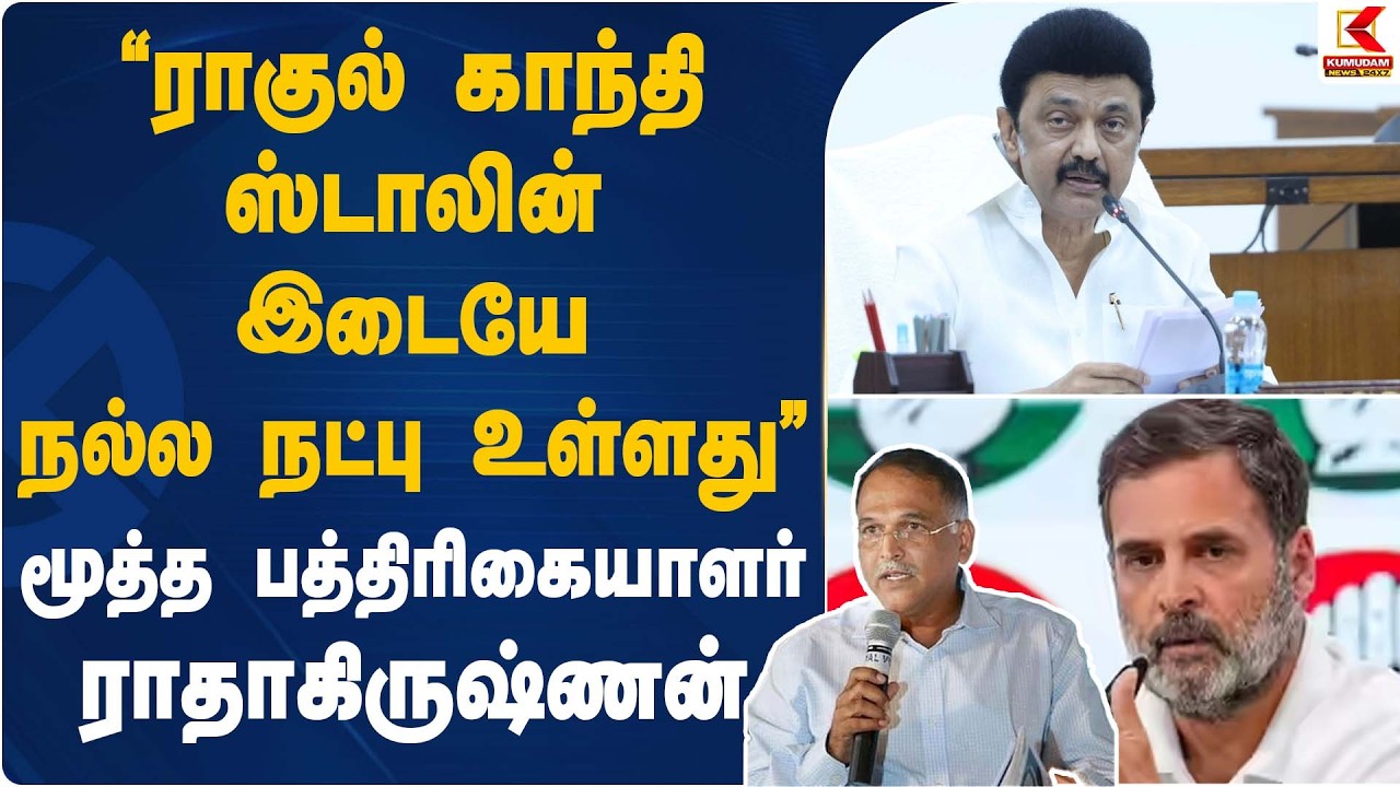 "ராகுல் காந்தி – ஸ்டாலின் இடையே நல்ல நட்பு உள்ளது" – மூத்த பத்திரிகையாளர் ராதாகிருஷ்ணன் | CM Stalin